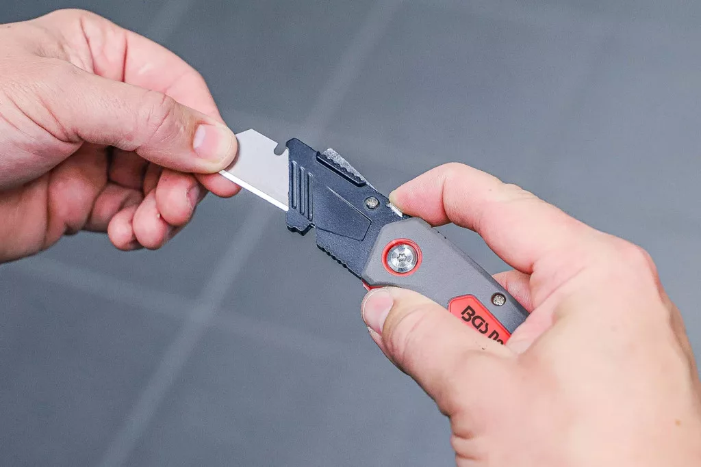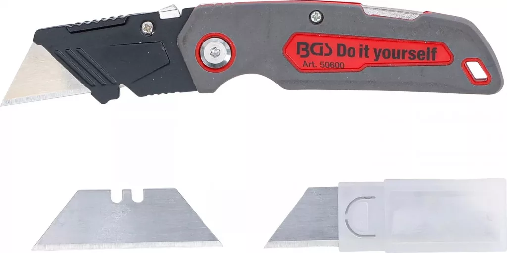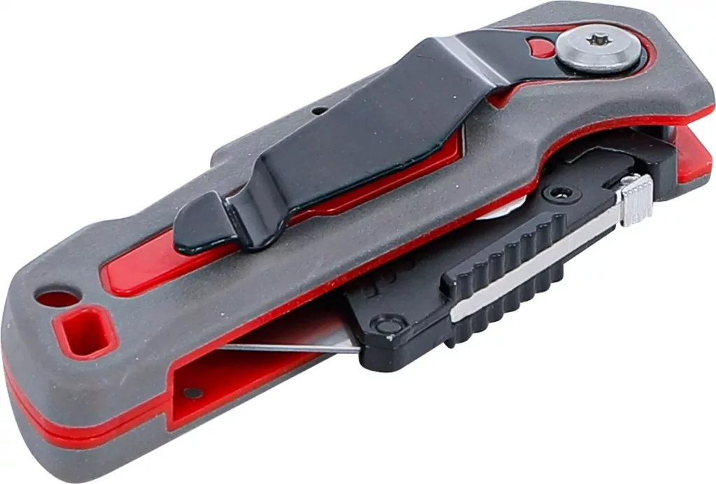 cutit utilizabil universal cu mecanism de strângere practiccu blocarea de siguranta la mecanismul de rabatare închis pentru cea mare siguranta posibilamanevrare simpla si sigura datorita fixarii cutitului, se desprinde cu un butonmâner de plastic confort din material plastic rezistent la socuriÎnlocuirea lamei mai rapida, fara sculecu clip de centuraLama montata li cutie cu lame suplimentare cu 4 lame trapezoidale de înlocuire (60 x 19 mm)Lungime totala: 160 mmLungime (rabatat închis)) 102 mmGrosime lama: 0,6 mmMaterial mâner: plastic (ABS si TPR)