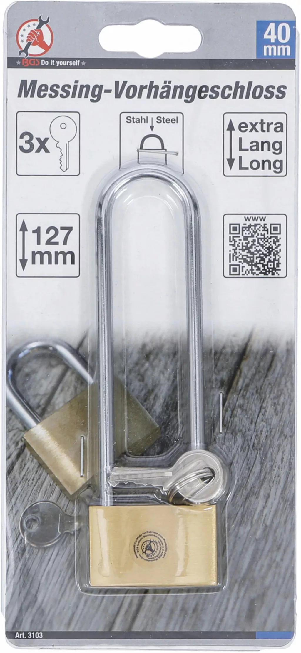 BGS DIY Lacăt alamă | bridă extra înaltă | 40 mm (BGS 3103)