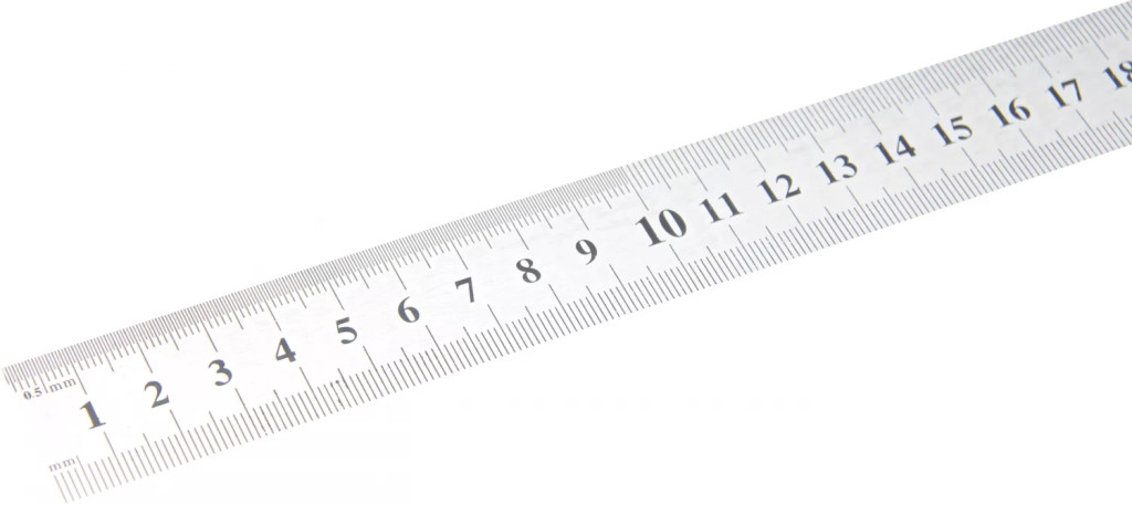Partea anterioara cu scala metrica, partea din spate cu scala în toli