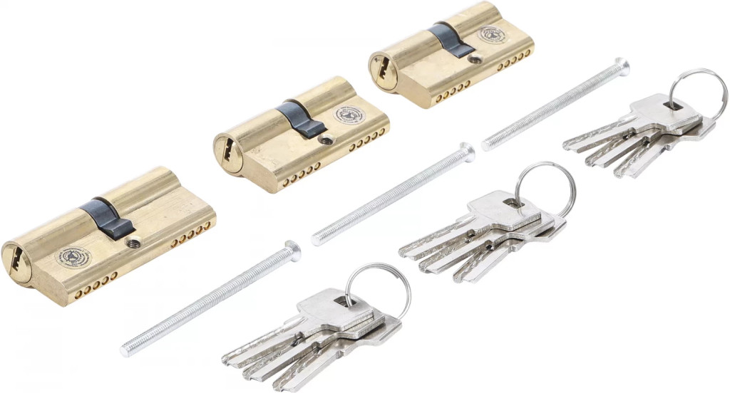 "Dispozitivul mic de închidere"executie greaPachet de livrare:2 cilindri profilati 60 mm1 cilindri profilati 70 mm9 chei identice3 suruburi