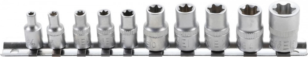 Date tehnice Profil parte de actionare Patrat interior Marime profil parte de actionare, metric 6,3 / 10 mm Profil priza de putere Profil E Marime profil parte de actionare, cota în toli 1/4" / 3/8" Deschidere cheie E4, E5, E6, E7, E8, E10, E11, E12, E14, E16 Material Otel crom-vanadiu Ambalaj adecvat pentru placare perete Da Greutatea bruta 250 g Îmbunatatire calitate suprafata Cromat, mat Setul contine: Tubulara tip E, unitate 6,3 mm (1/4 "): E4 Tubulara tip E, unitate 6,3 mm (1/4 "): E5 Tubulara tip E, unitate de 6,3 mm (1/4 "): E6 Tubulara tip E, unitate de 6,3 mm (1/4 "): E7 Tubulara tip E, unitate de 6,3 mm (1/4 "): E8 Tubulara tip E, unitate de 10 mm (3/8 "): E10 Tubulara tip E, unitate de 10 mm (3/8 "): E11 Tubulara tip E, unitate de 10 mm (3/8 "): E12 Tubulara tip E unitate de 10 mm (3/8 "): E14 Tubulara tip E, unitate de 10 mm (3/8 "): E16