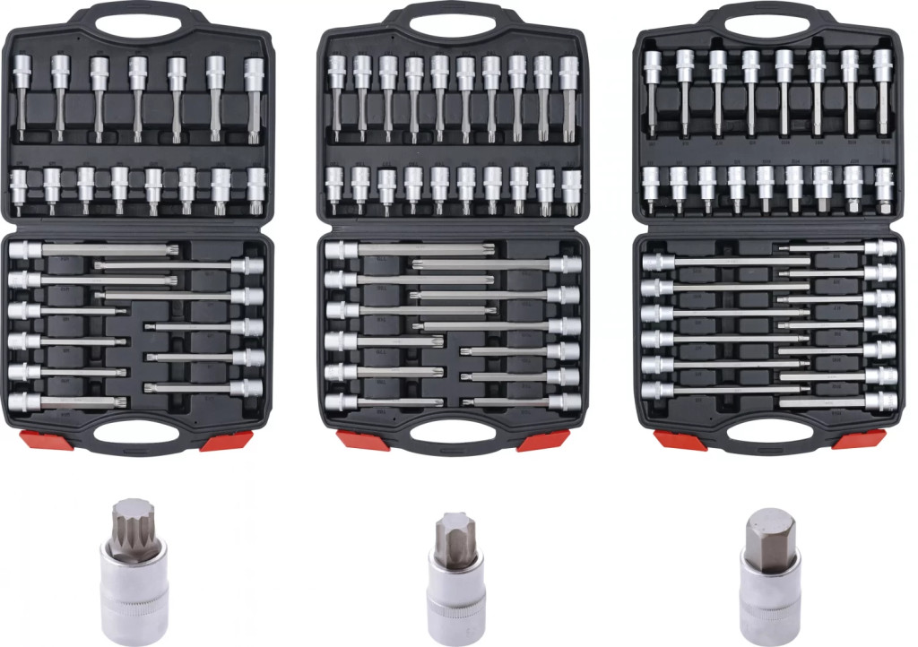 Pachet de livrare:Cap bit, 55 mm, Actionare 12,5 mm (1/2"), dantura interioara multipla (pentru XZN) M5 - M6 - M8 - M9- M10 - M12 - M14 - M16Cap bit, 100 mm, actionare 12,5 mm (1/2"), dantura interioara multipla (pentru XZN) M5 - M6 - M8 - M9- M10 - M12 - M14Cap bit, 140 mm, actionare 12,5 mm (1/2"), dantura interioara multipla (pentru XZN) M5 - M6 - M8 - M9- M10 - M12 - M14Cap bit, 200 mm, Actionare 12,5 mm (1/2"), dantura interioara multipla (pentru XZN) M8 - M10 - M12 - M14Cap bit, 55 mm, Actionare 12,5 mm (1/2"), hexagon interior 5 - 6 - 7 - 8 - 10 - 12 - 14 - 17 - 19 mmCap bit, 100 mm, Actionare 12,5 mm (1/2"), hexagon interior 5 - 6 - 7 - 8 - 10 - 11 - 12 - 13 mmCap bit, 140 mm, Actionare 12,5 mm (1/2"), hexagon interior 5 - 6 - 7 - 8 - 10 - 12 - 14 mmCap bit, 200 mm, Actionare 12,5 mm (1/2"), hexagon interior 5 - 6 - 7 - 8 - 10 - 12 mmCap bit, 55 mm, Actionare 12,5 mm (1/2"), Profil T (pentru Torx) T20 - T25 - T27 - T30 - T40 - T45 - T50 - T55 - T60 - T70Cap bit, 100 mm, Actionare 12,5 mm (1/2"), Profil T (pentru Torx) T20 - T25 - T27 - T30 - T40 - T45 - T50 - T55 - T60 - T70Cap bit, 140 mm, Actionare 12,5 mm (1/2"), Profil T (pentru Torx) T40 - T45 - T50 - T55 - T60 - T70Cap bit, 200 mm, Actionare 12,5 mm (1/2"), Profil T (pentru Torx) T40 - T45 - T50 - T55 - T60 - T70