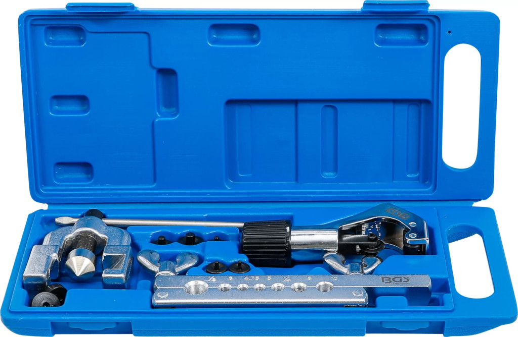 rezultate de lucru rapide si precise datorita miscarii de bordurare în linie dreaptaScula speciala pentru realizarea de bordurari tip D, bordurari duble tip E (SAE) si bordurari duble tip Fpentru tevi cu grosimi de perete pâna la 1 mm Pachet de livrare:1 aparat de baza1 etrier suport / bacuri de strângere1 taietor de tevi7 piese de presare 1/4" - 1/2" - 4,75 - 5 - 6 - 8 - 10 mm