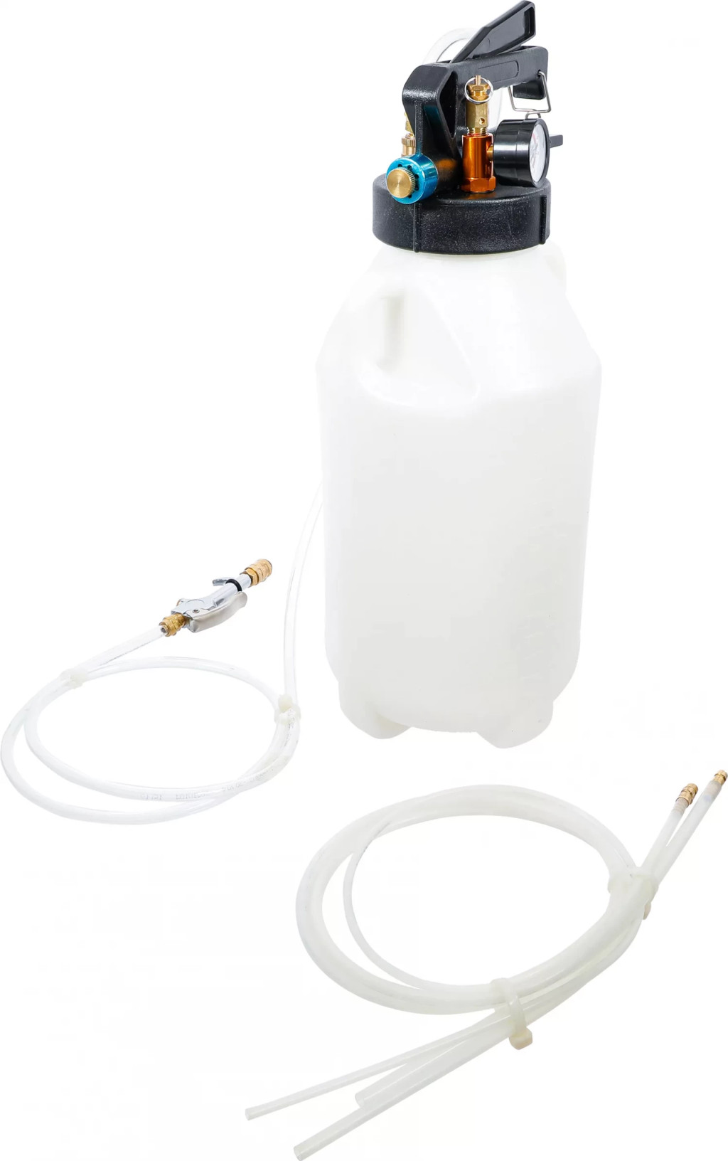 pentru umplerea simpla si profesionista a transmisiiloradecvat si pentru alte lichide necoroziveadaptoare adecvate pentru transmisiile urmatoarelor vehicule:Adaptor pentru Ford, 1/8"- 27NPTAdaptor universal pentru de ex. BMW, Honda, Nissan etc.Adaptor pentru VW, AudiAdaptor pentru VW, Audi, PorscheAdaptor pentru VW, Audi , MINI, M10 x 1,0Adaptor pentru VW si Audi DSG, M24 x 1,5Adaptor pentru VW si Audi CVT, M22 x 1,5Adaptor pentru Mercedes-Benz 722,9, M12 x 1,0Manometru pentru monitorizarea presiunii de umpleresupapa de siguranta 3 barMarime recipient 6000 cm³Consum de aer 57 l/minRacord aer 6,3 mm (1/4")