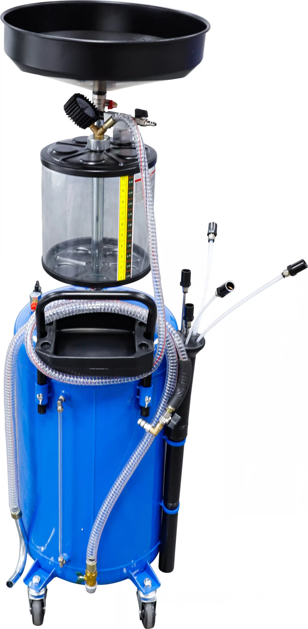 pentru colectarea, aspirarea, transportarea si eliminarea uleiurilor de motor, cutie de viteze si osie spateSolutie completa pentru schimbarea uleiului în atelier sau garajcu rezervor mare de 80 litriRacordul de aer comprimat faciliteaza golirea curata a recipientuluiRecipient de colectare reglabil pe înaltimeÎnaltime totala min.: 103 cmÎnaltime totala max.: 163 cmcu 4 role de transport din care 2 role directoare pentru o manevrarea mai usoararecipient de plexiglas mai mare pentru controlul cantitatilor de ulei aspirateCilindru volum din plexiglas: 10 lDepresiune: 0 - 0,8 barPachet de livrare:1 Sonda joja de ulei: Ø 5 x 3,5 mm, Lungime 950 mm1 Sonda joja de ulei: Ø 6 x 4,5 mm, Lungime 950 mm1 Sonda joja de ulei: Ø 8 x 6,5 mm, Lungime 950 mm1 Sonda joja de ulei din metal: Ø 6 x 4,5 mm, Lungime 760 mm1 Sonda joja de ulei din metal: Ø 8 x 6,5 mm, Lungime 760 mm1 furtun de scurgere, Lungime 180 cm