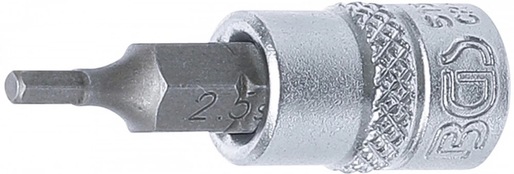 Date tehnice Profil priza de putere Imbus hexagonal Lungime 38 mm Greutatea bruta 18 g Profil parte de actionare Patrat interior Marime profil parte de actionare, cota în toli 1/4 " Material Otel crom-vanadiu Îmbunatatire calitate suprafata Cromat, mat Marime profil priza de putere 2,5 mm Marime profil parte de actionare, metric 6,3 mm