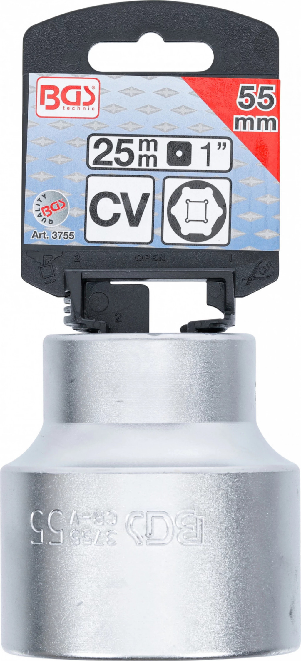 Date tehnice Marime profil parte de actionare, metric 25 mm Material Otel crom-vanadiu Deschidere cheie 55 mm Marime profil parte de actionare, cota în toli 1 " Profil parte de actionare Patrat interior Profil priza de putere Pro Torque® (hexagon) Greutatea bruta 1200 g Îmbunatatire calitate suprafata Cromat, mat
