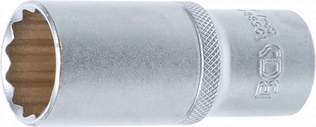 Date tehnice Marime profil parte de actionare, cota în toli 1/2 " Profil priza de putere Dodecagon Deschidere cheie 24 mm Marime profil parte de actionare, metric 12,5 mm Material Otel crom-vanadiu Greutatea bruta 214 g Îmbunatatire calitate suprafata Cromat, mat Profil parte de actionare Patrat interior