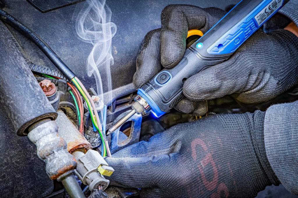 indiferent daca în atelier, pe santier sau pe drumînsotitor fiabil pentru cele mai diverse lucrari de lipirepentru realizarea de îmbinari lipite cu aliaj moale de lipit în electricitate si electronicafara cablu, pentru o zona de lucru libera fara cabluri suparatoareda posibilitatea libertatii de miscare în jurul fiecarui proiect de lucru fara o legatura la o prizatimpul scurt de încalzire garanteaza o pregatire de utilizare rapida si da posibilitatea unui lucru eficientcu un vârf fin si caldura uniforma pentru cea mai înalta precizie chiar si la lucrari de lipire de detaliudesign-ul ergonomic ofera o utilizare comodacu zona de prindere cauciucata si lampa de lucru cu LEDfaza de încalzire scurtaSistem automat de deconectare dupa cca. 10 minReactivabil imediat printr-o apasare de tastacu lampa de control LED pentru starea pregatit de functionare si procesul de încarcareStatie cu loc integrat de depunere burete pentru curatarea vârfului de lipireinclusiv cablu de încarcare USBTemperatura max.: 450 °CTimp de lucru: 45 minîncarcatorul recomandat (nu este cuprins în pachetul de livrare): USB-A | 5 V | min. 500 mAPachet de livrare:1 ciocan de lipit cu vârfuri de lipire1 cablu de încarcare (USB)1 statie cu loc integrat de depunere burete1 cositor de lipit | pe rola | fara plumb | Ø 1 mm | 10 g (BGS 74507)1 cositor de lipit | pe rola | fara plumb | Ø 1,5 mm | 10 g (BGS 74508)