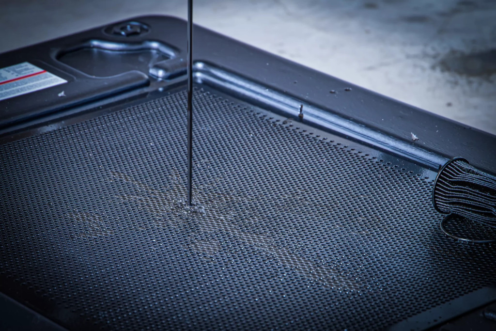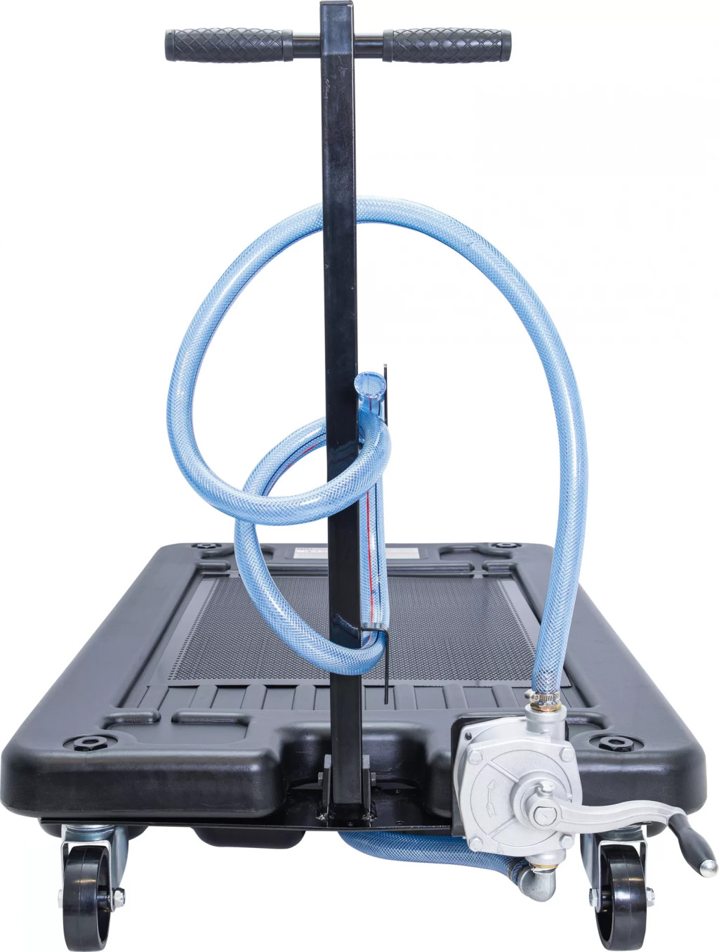 adecvat în mod deosebit la reparatii aproape de sol si pentru depunere componentelor îmbibate în uleicuva permite sa fie simplu pozitionata datorita a 4 role directoare si oistei de manevrarepompa manuala cu manivela pentru golirea recipientuluiacoperire din tabla perforata pentru asezarea pieselor constructiveCuva din material plastic cu întarire din tabla de otel la punctele de fixare ale rolelor directoare