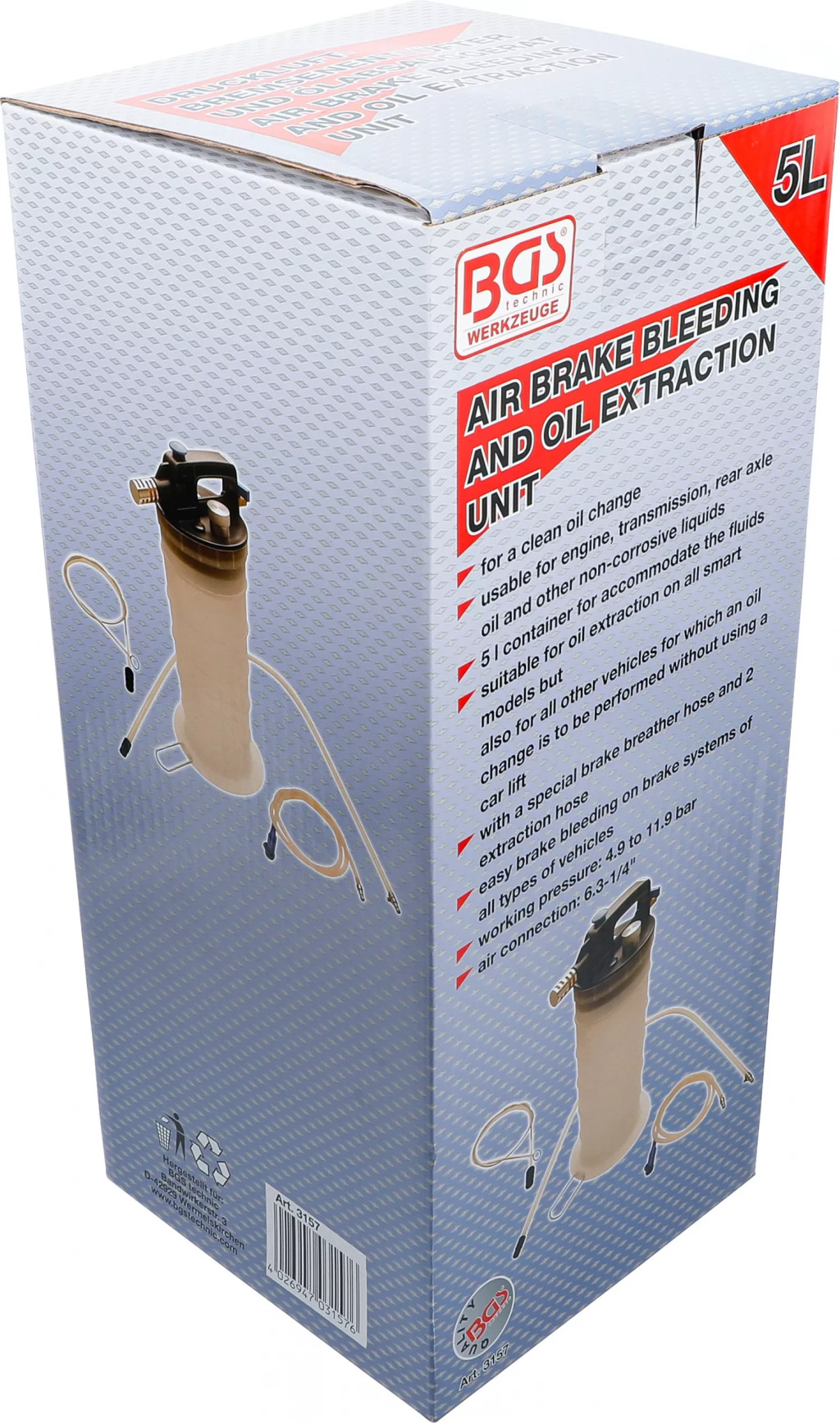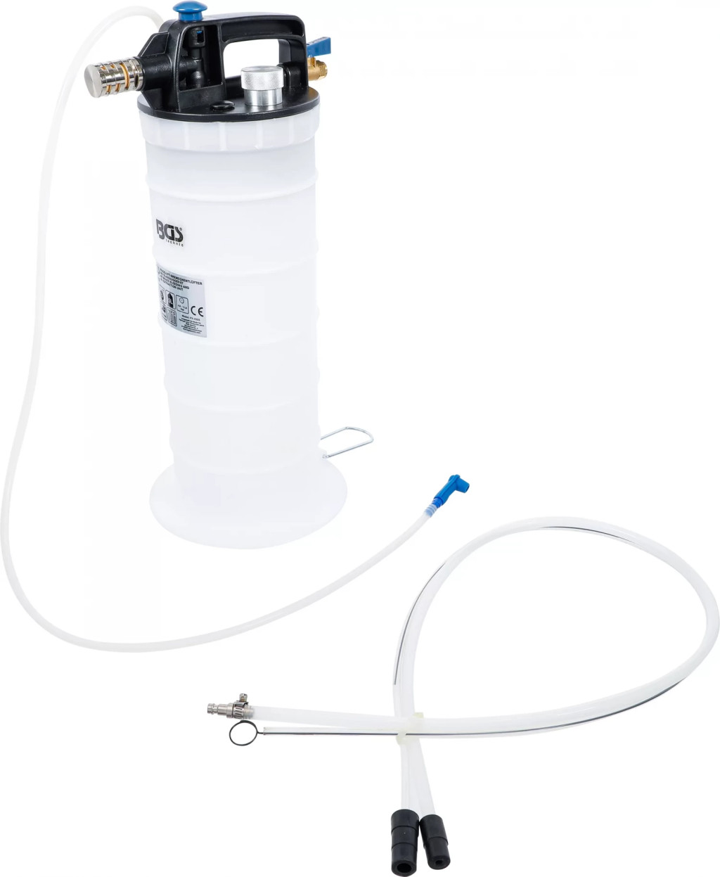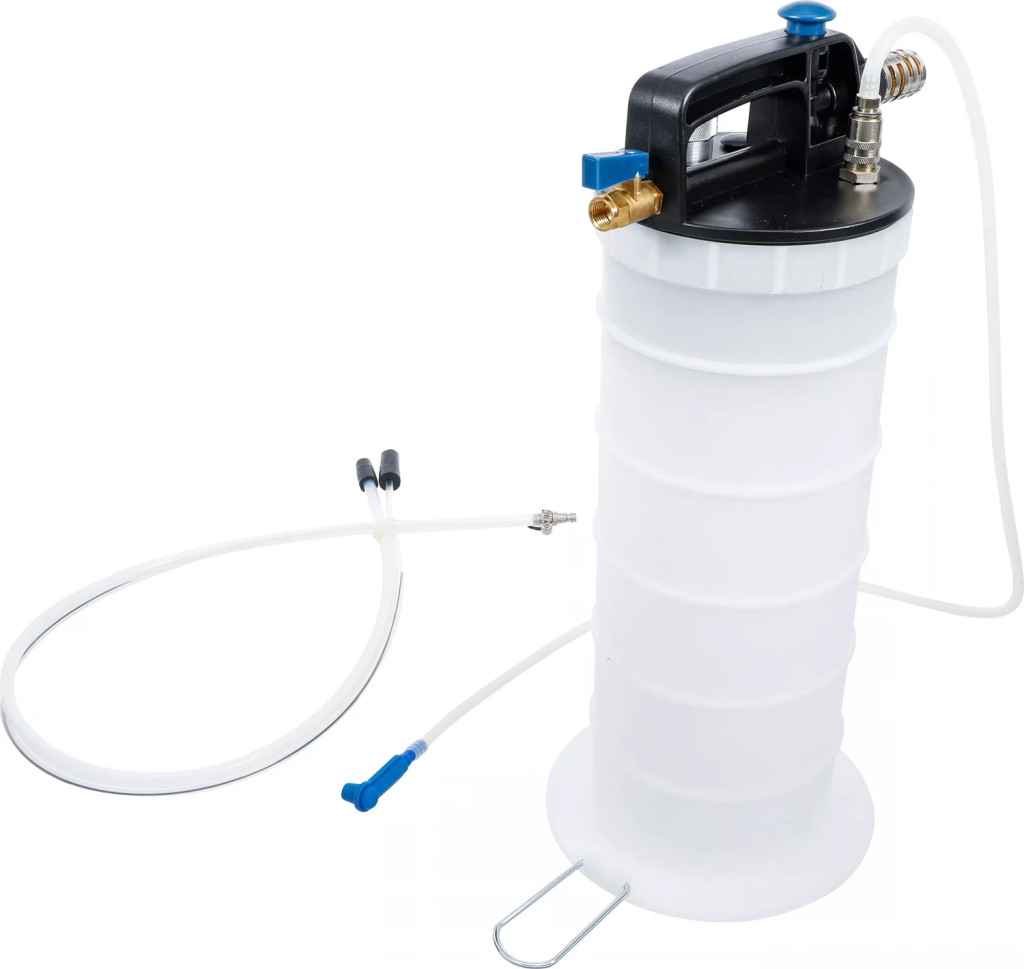 faciliteaza un schimb de ulei mai curat prin aspirareadecvat pentru uleiurilor de motor, cutie de viteza si osie spate si pentru alte lichide necoroziverecipient de 5 litri pentru preluarea lichiduluiadecvat pentru aspirarea uleiului de ex. la Smart dar si la alte vehicule la care trebuie efectuat schimbul de ulei fara utilizarea unei platforme elevatoarecu furtun special de dezaerare frâne si 2 tevi de aspirarefaciliteaza dezaerarea instalatiilor de frânare la toate vehiculele