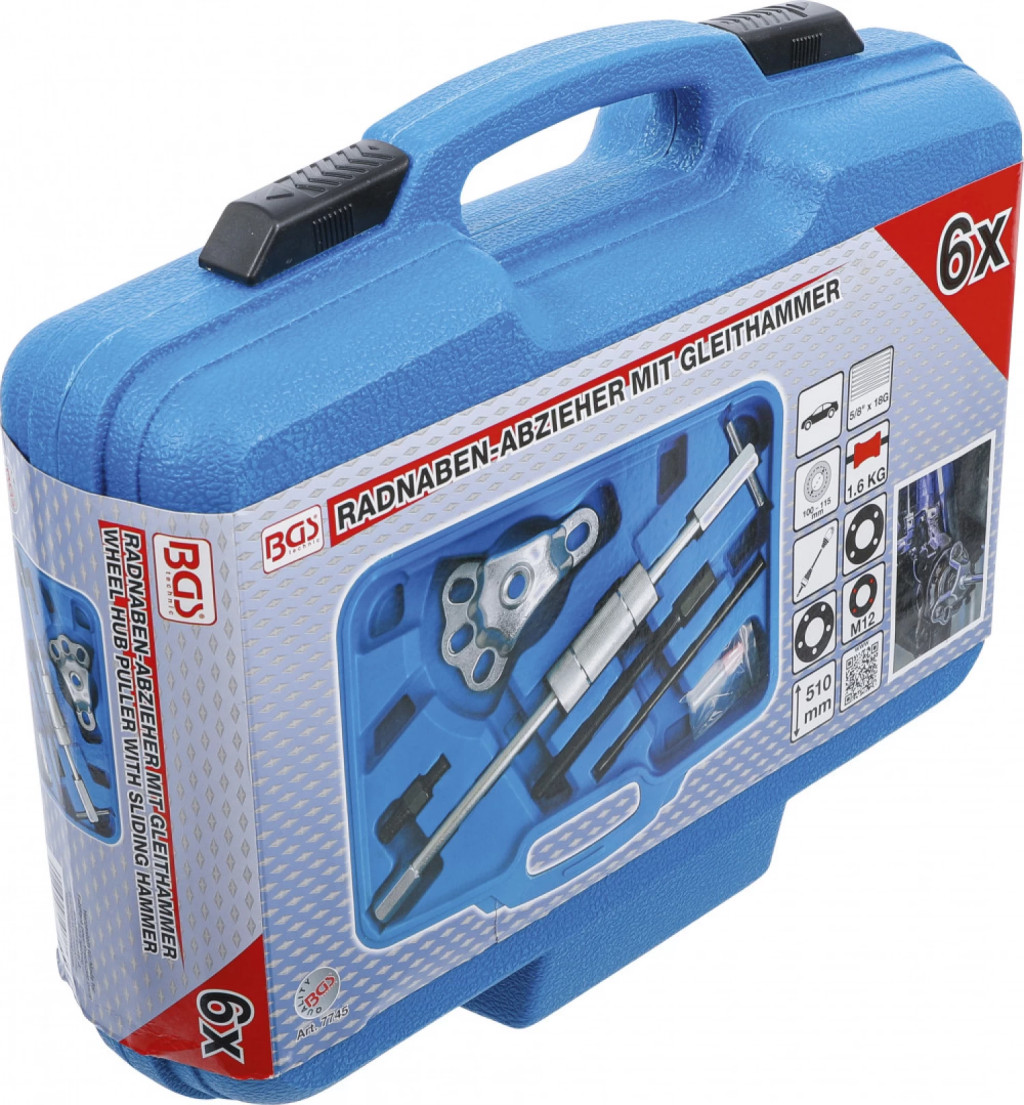 Descriere: - pentru extragerea butucului rotii - dimensiunea filetului interior pe ciocanul glisant este BSW 12G - dimensiunea filetului interior al piciorului de tractiune este BSW 3/4 " - lungimea totala a piciorului de tragere asamblat este de aprox. 51 cm - adaptor filet BSW 12 G x BSW 3/4 " inclus - greutatea ciocanului glisant: 1600g Date tehnice Greutatea bruta 4170 g