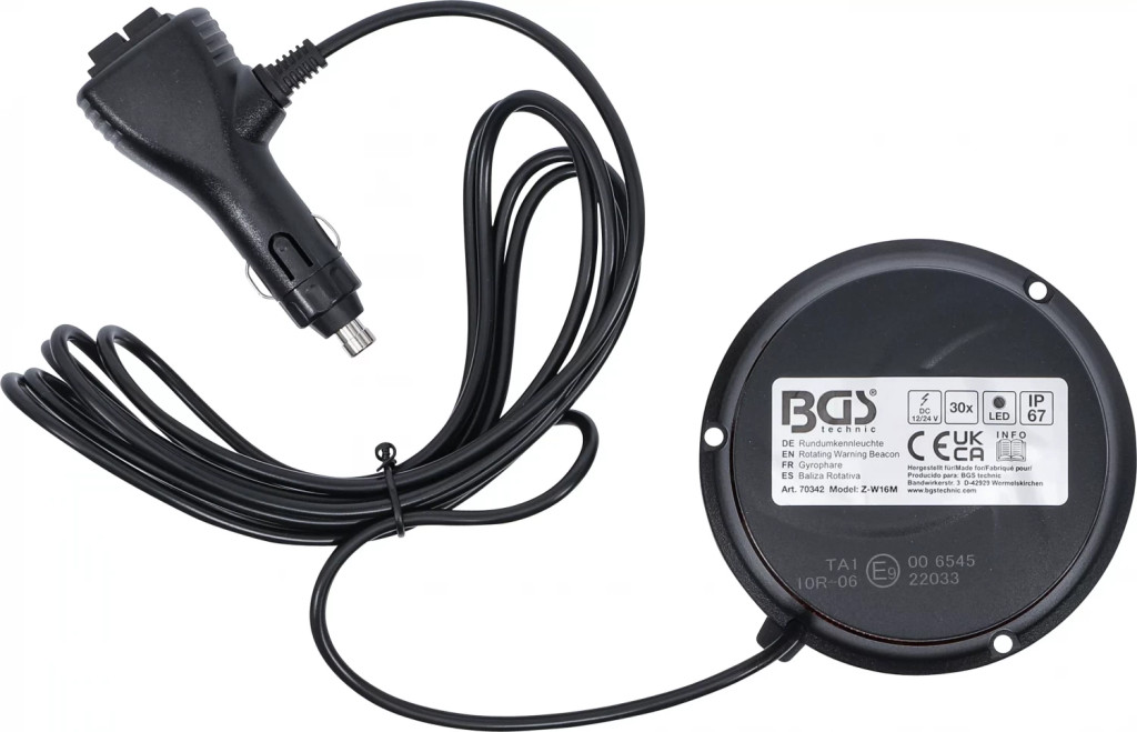 De utilizat la vehicule sau remorci cu o latime, lungime sau încarcare neobisnuita precum si la vehicule de interventii si vehicule de asistentaatrage atentia la situatii neobisnuite în mediul de lucrude fixat cu un picior magnetic integrat sau o ventuza cu vidGirofar LED galben rotativ 360°3 moduri de intermitenta diferita: simpla / dubla / tripla4 moduri de rotatie diferite: lent în sens antiorar (480 ms), lent în sens orar (480 ms), repede în sens antiorar (300 ms), repede în sens orar (300 ms)Putere luminoasa, focalizare si distributie optimaconductor de alimentare cu stecher pentru aprinzator brichetaCu marcaj de verificare ECE (E9)Alimentare tensiune: DC 12 - 24 VAbsorbtie curent: 0,79 A la 24 VLungime unda luminoasa: 590 - 595 nmCuloare lumina: galben