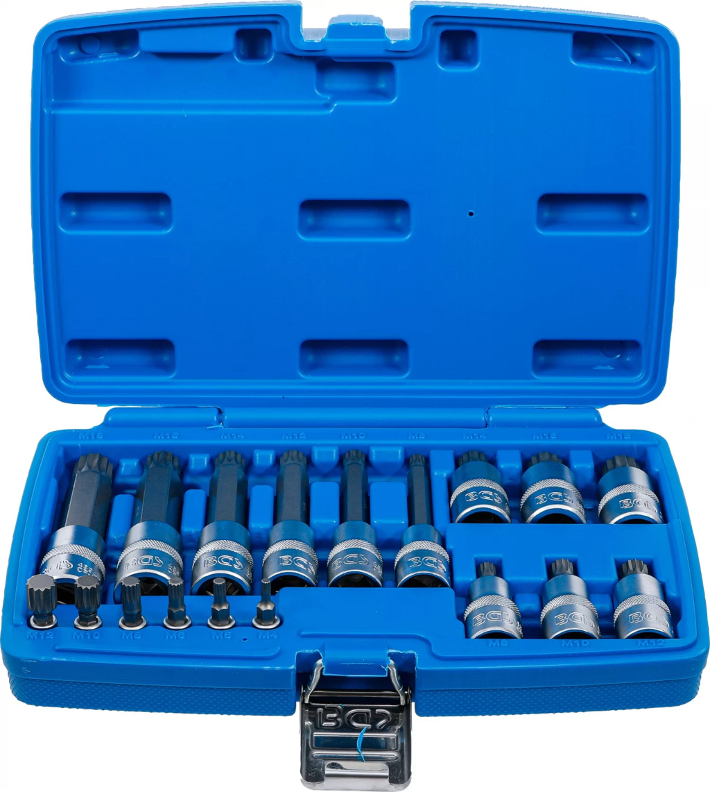 ansamblu set compact cu diferite actionari/antrenaripentru actionare manualacu randalinarepastrare sigura si ordonata în cutie de material plasticPachet de livrare:1 cap bit | 6,3 mm (1/4") | dantura interioara multipla (pentru XZN) M4 (BGS 5105-M4)1 cap bit | 6,3 mm (1/4") | dantura interioara multipla (pentru XZN) M5 (BGS 5105-M5)1 cap bit | 6,3 mm (1/4") | dantura interioara multipla (pentru XZN) M6 (BGS 5105-M6)1 cap bit | 6,3 mm (1/4") | dantura interioara multipla (pentru XZN) M8 (BGS 2503)1 cap bit | 6,3 mm (1/4") | dantura interioara multipla (pentru XZN) M10 (BGS 2506)1 cap bit | 6,3 mm (1/4") | dantura interioara multipla (pentru XZN) M12 (BGS 2507)1 cap bit | 12,5 mm (1/2") | dantura interioara multipla (pentru XZN) M8 (BGS 4352)1 cap bit | 12,5 mm (1/2") | dantura interioara multipla (pentru XZN) M10 (BGS 4353)1 cap bit | 12,5 mm (1/2") | dantura interioara multipla (pentru XZN) M12 (BGS 4354)1 cap bit | 12,5 mm (1/2") | dantura interioara multipla (pentru XZN) M14 (BGS 4344)1 cap bit | 12,5 mm (1/2") | dantura interioara multipla (pentru XZN) cu gaura M16 (BGS 4356)1 cap bit | 12,5 mm (1/2") | dantura interioara multipla (pentru XZN) cu gaura M181 cap bit | lungime 100 mm | 12,5 mm (1/2") | dantura interioara multipla (pentru XZN) M8 (BGS 4361)1 cap bit | lungime 100 mm | 12,5 mm (1/2") | dantura interioara multipla (pentru XZN) M10 (BGS 4362)1 cap bit | lungime 100 mm | 12,5 mm (1/2") | dantura interioara multipla (pentru XZN) M12 (BGS 4363)1 cap bit | lungime 100 mm | 12,5 mm (1/2") | dantura interioara multipla (pentru XZN) M14 (BGS 4364)1 cap bit | lungime 100 mm | 12,5 mm (1/2") | dantura interioara multipla (pentru XZN) M161 cap bit | lungime 100 mm | 12,5 mm (1/2") | dantura interioara multipla (pentru XZN) M18