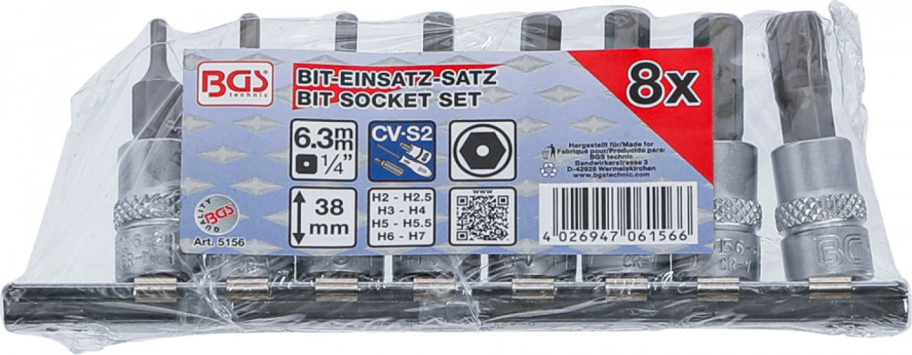 BGS technic Set biţi | Antrenare pătrat interior 6,3 mm (1/4") | Inbus cu alezaj 2 - 7 mm | 8 piese (BGS 5156)