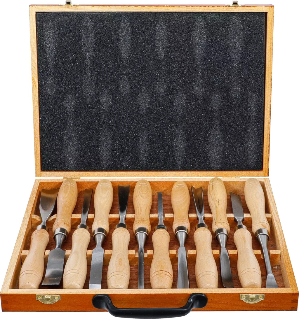 otel de înalta calitatediferite profile de dalti pentru lucrari de sculptura preciselungime câte cca. 225 mmadecvat si pentru lucrari pretentioase de sculptura în lemnBrose din lemn de înalta calitateÎn caseta de lemn nobil
