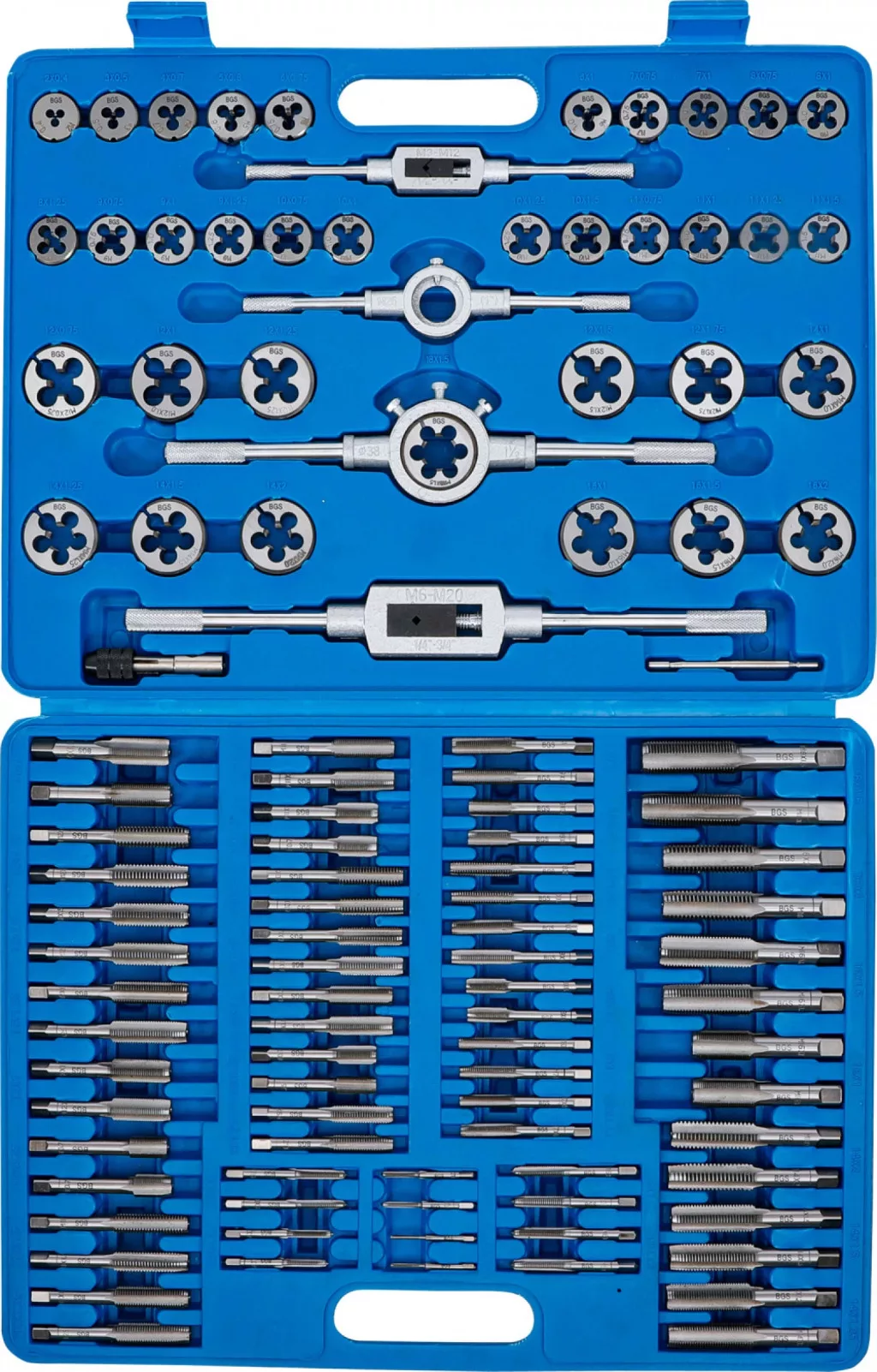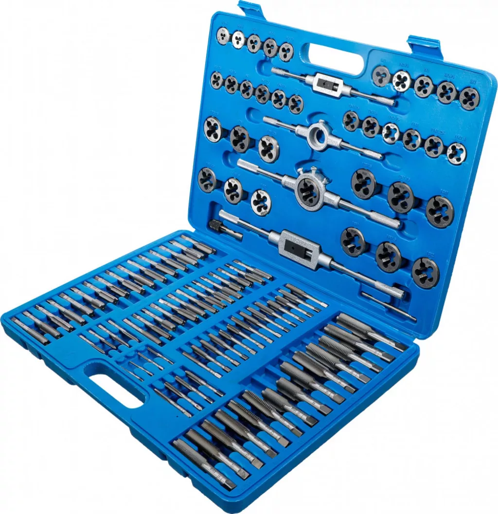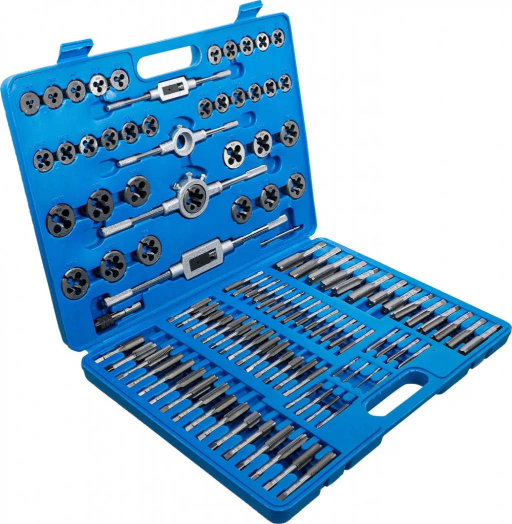 Descriere Date tehnice: Metric si pas fin Filiere si tarozi in mm: M2 x 0.4 - M3 x 0.5 - M4 x 0.7 - M5 x 0.8 - M6 x 1.0 M6 x 0.75 - M7 x 1.0 - M7 x 0.75 - M8 x 0.75 - M8 x 1.0 M8 x 1.25 - M9 x 0.75 - M9 x 1.0 - M9 x 1.25 - M10 x 0.75 M10 x 1.0 - M10 x 1.25 - M10 x 1.5 - M11 x 0.75 - M11 x 1.0 M11 x 1.25 - M11 x 1.5 - M12 x 0.75 - M12 x 1.0 - M12 x 1.25 M12 x 1.5 - M12 x 1.75 - M14 x 1.0 - M14 x 1.25 - M14 x 1.5 M14 x 2.0 - M16 x 1.0 - M16 x 1.5 - M16 x 2.0 - M18 x 1.5 Material Otel pentru scule (GCr15) Greutatea bruta 5900 g