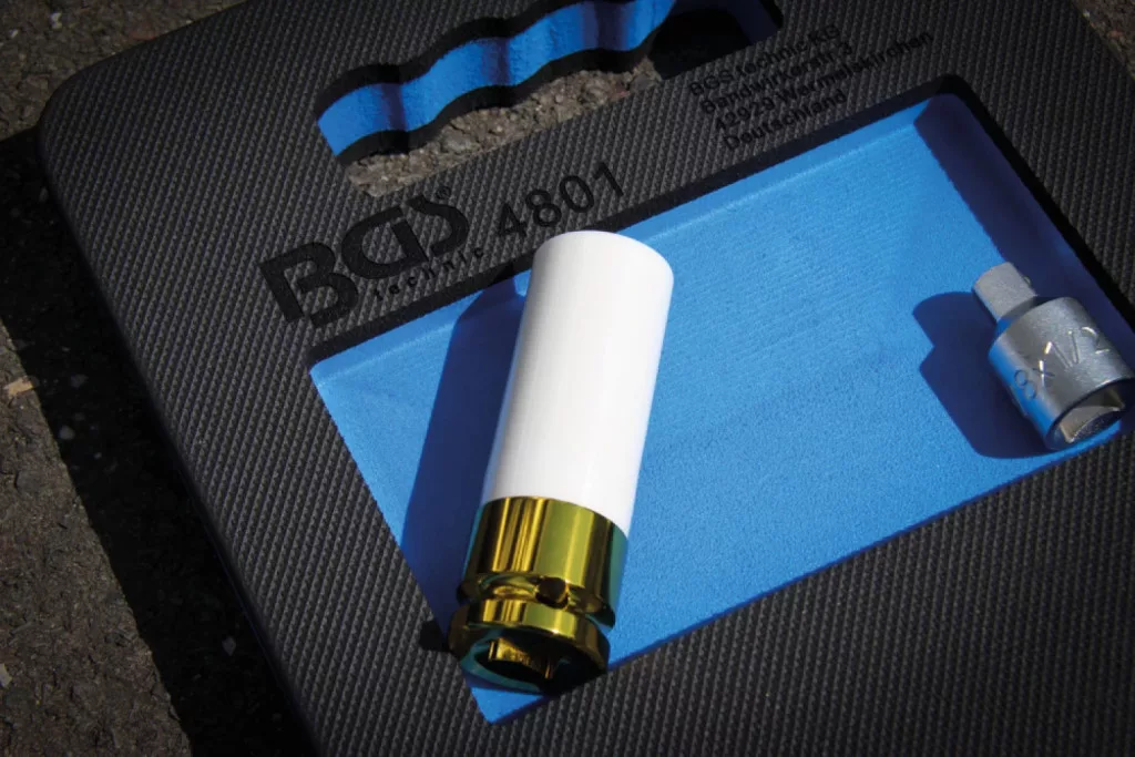 Descriere Setul contine: Cheie dinamometrica 28 - 210 Nm + Adaptor 12.5 mm (1/2") drive, 10 mm (3/8") + Prelungitor 12.5 mm (1/2") (BGS 98) Set tubulare de impact 17 / 19 / 21 mm, 12.5 mm (1/2"), lungime: 85 mm, 3 piese (BGS 7200) atât pentru utilizare manuala, cât si pentru pistoale de impact poate fi fixate pe pistoale de impact cu stift si inel O Protectii din plastic colorate ajuta la indicarea dimensiunii potrivite Protectie pentru genunchi 450 x 210 x 30 mm (BGS 4801) cu compartiment pentru prezoane, tubulare, capete antifurt,adaptoare prelungitoare rezistenta la acid EPE Manusi pentru Mecanici, Dimensiune 10 (XL) (BGS 9954) partial acoperite prindere buna si siguranta manseta tricotata bun simt al atingerii potrivit pentru: service de anvelope Cheie cruce pentru roti 17 x 19 x 21 x 12.5 mm (1/2") (BGS 1459) cu ranforsare pentru rezistenta DIN 3119 lungimea bratului: 355 mm patrat de antrenare 12.5 mm (1/2") hexagon 17 x 19 x 21 mm