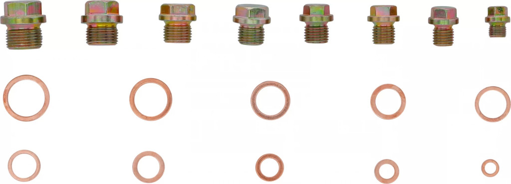 în caseta de sortimentPachet de livrare:Busoane scurgere ulei: 5x10 mm - 5x12 mm - 5x13 mm - 5x14 mm - 5x15 mm - 3x16 mm - 3x18 mm - 3x20 mminele de etansare din cupru: 50x6 mm - 50x8 mm - 50x10 mm - 50x12 mm - 50x13 mm - 50x14 mm - 50x15 mm - 50x16 mm - 50x18 mm - 50x20 mm