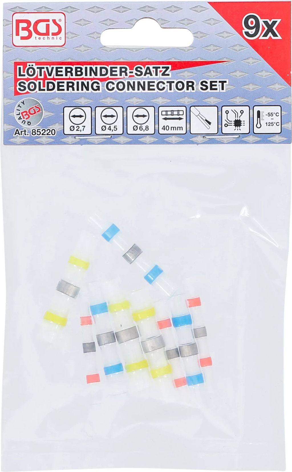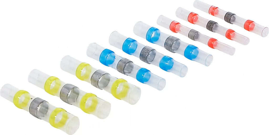 furtun contractil transparent cu inel colorat si de cositor pentru lipitda posibilitatea unei lipiri si contractari simultane prin încalzirecuprinde câte 3 bucati de marimile urmatoare:diametru interior 2,7 mm, lungime 40 mmdiametru interior 4,5 mm, lungime 40 mmdiametru interior 6,8 mm, lungime 40 mmDomeniul de temperatura -55 - 125 °CClasa de protectie: IP67