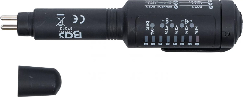 pentru testarea sigura a lichidelor de frâna6 LED-uri pentru evaluarea lichidului de frânaadecvat pentru urmatoarele lichide de frâna: DOT 3, DOT 4, DOT 5.1, Pennzoil DOT 3, Motorcraft DOT 3, AC Delco DOT 3, Prestone DOT 3, Toyota DOT 3cu iluminare LEDBaterie: 1,5 V AAA (inclusiv)