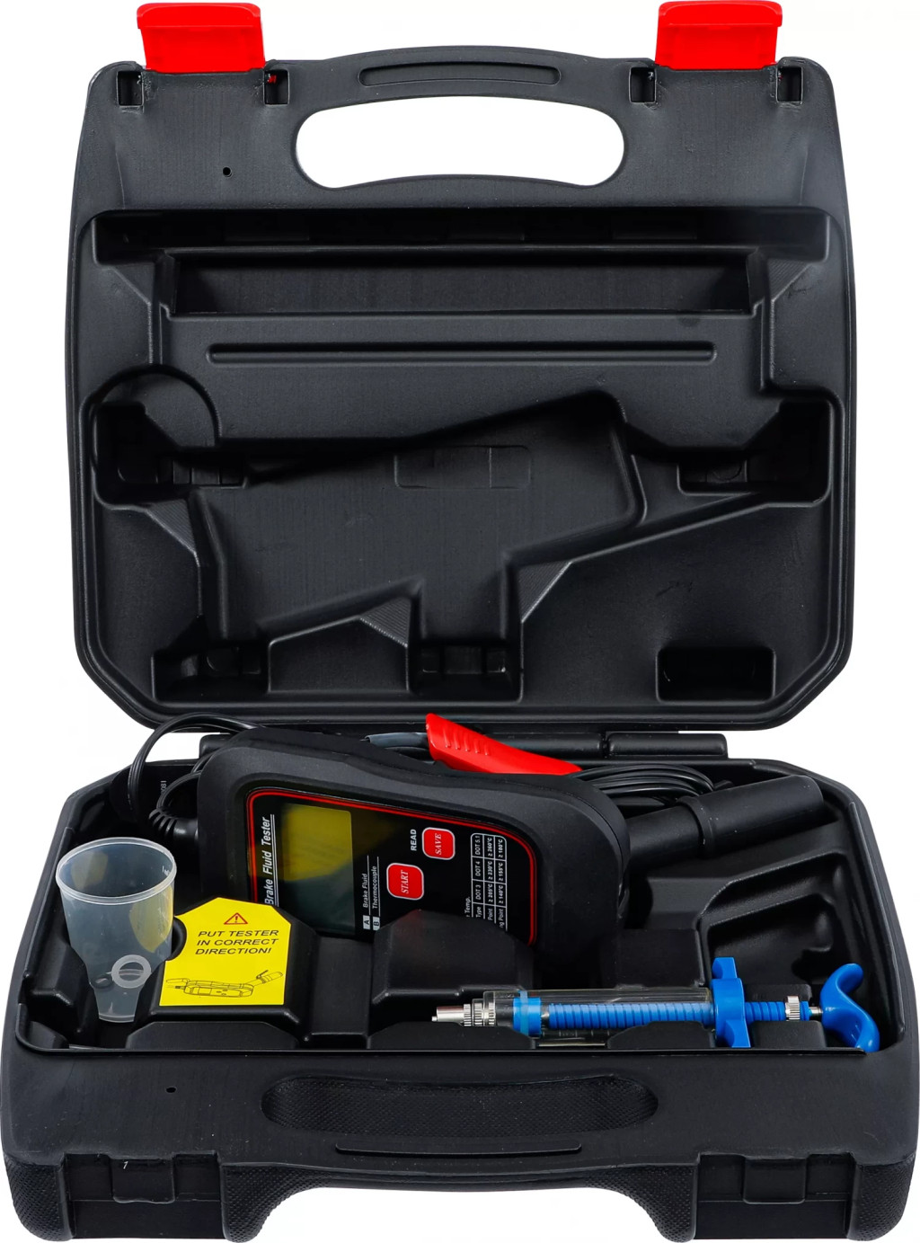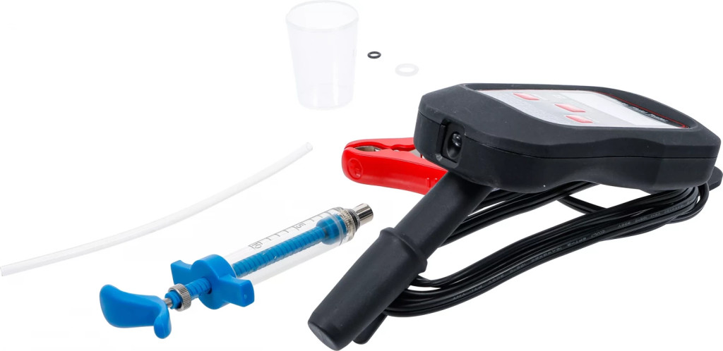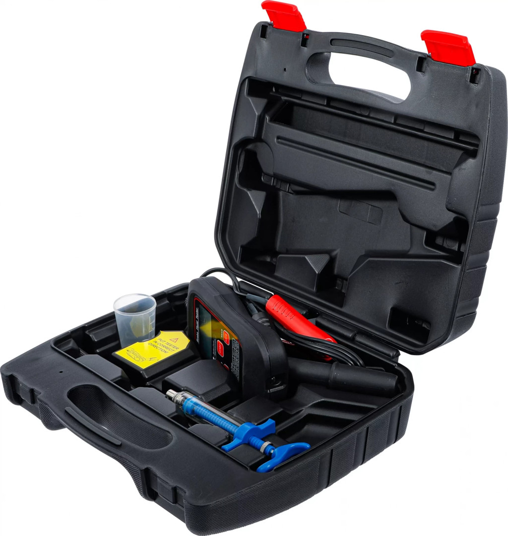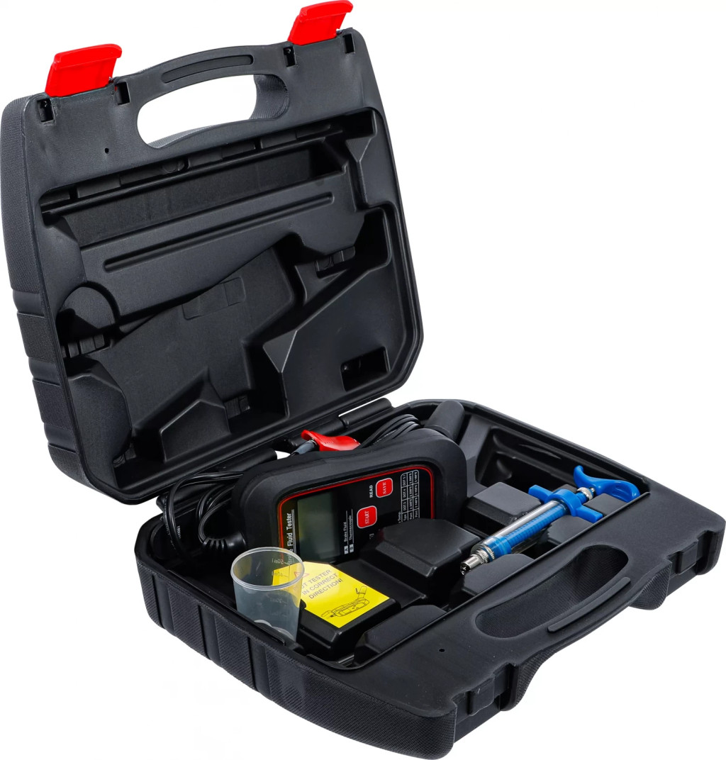 pentru masurare punctului de evaporare la lichidul de frânaTemperatura punctului de fierbere foloseste determinarii exacte a cotei de apa din lichidele de frânaadecvat la utilizarea unui senzor de temperatura si pentru masurarea temperaturii altor lichideadecvat pentru autoturisme, motociclete si utilitare mici cu lichid de frâna DOT 3, DOT 4, DOT 4 PLUS sau DOT 5.1Alimentare tensiune: 12 V (baterie auto)Curent de testare: 5 - 7 ATemperatura ambianta: 0 - 50 °CPunct de fierbere-Domeniu de masurare:Punct de fierbere-Precizie de masurare: +/- 5 %Temperatura-Domeniu de masurare: -60 °C pâna la 500 °C (-76 °F pâna la 932 °F)Temperatura-Precizie de masurare: -20 pâna la 500 °C +/- (1 %+3digit)