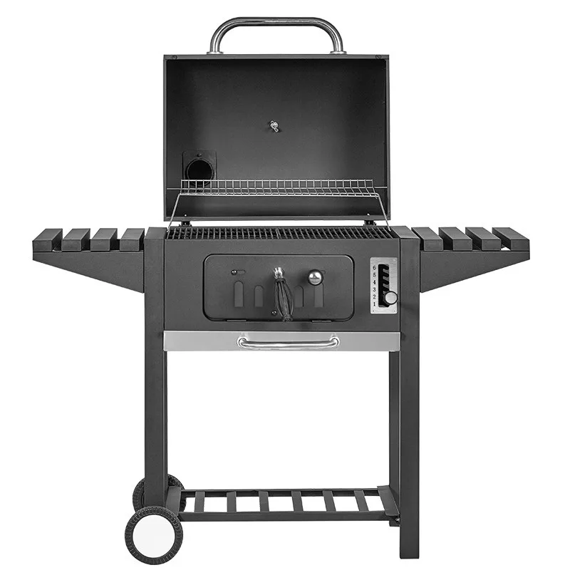 BORMANN ELITE grătar pe cărbune - SMOKER, 60x45cm, cu termometru, 6 poziții, 2 mese laterale, tavă pentru cenușă (BBQ1940)