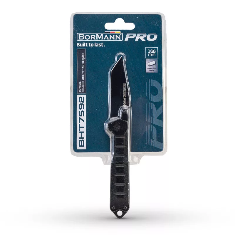 BORMANN Pro cuțit pliabil negru, mâner aluminiu 166 mm, lamă neagră (BHT7592)