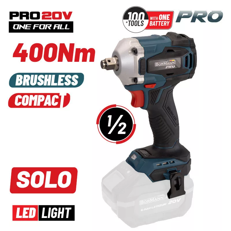 BORMANN Pro înșurubător compact fără perie, 20V, Li-Ion, 400 Nm, 0-1800/0-2200/0-2600 rpm, fără acumulator și încărcător (BBP5123)