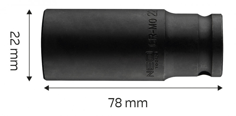 Cheie mecanică lungă cu tub NEO 1/2", 22mm, Cr-Mo (12-322)