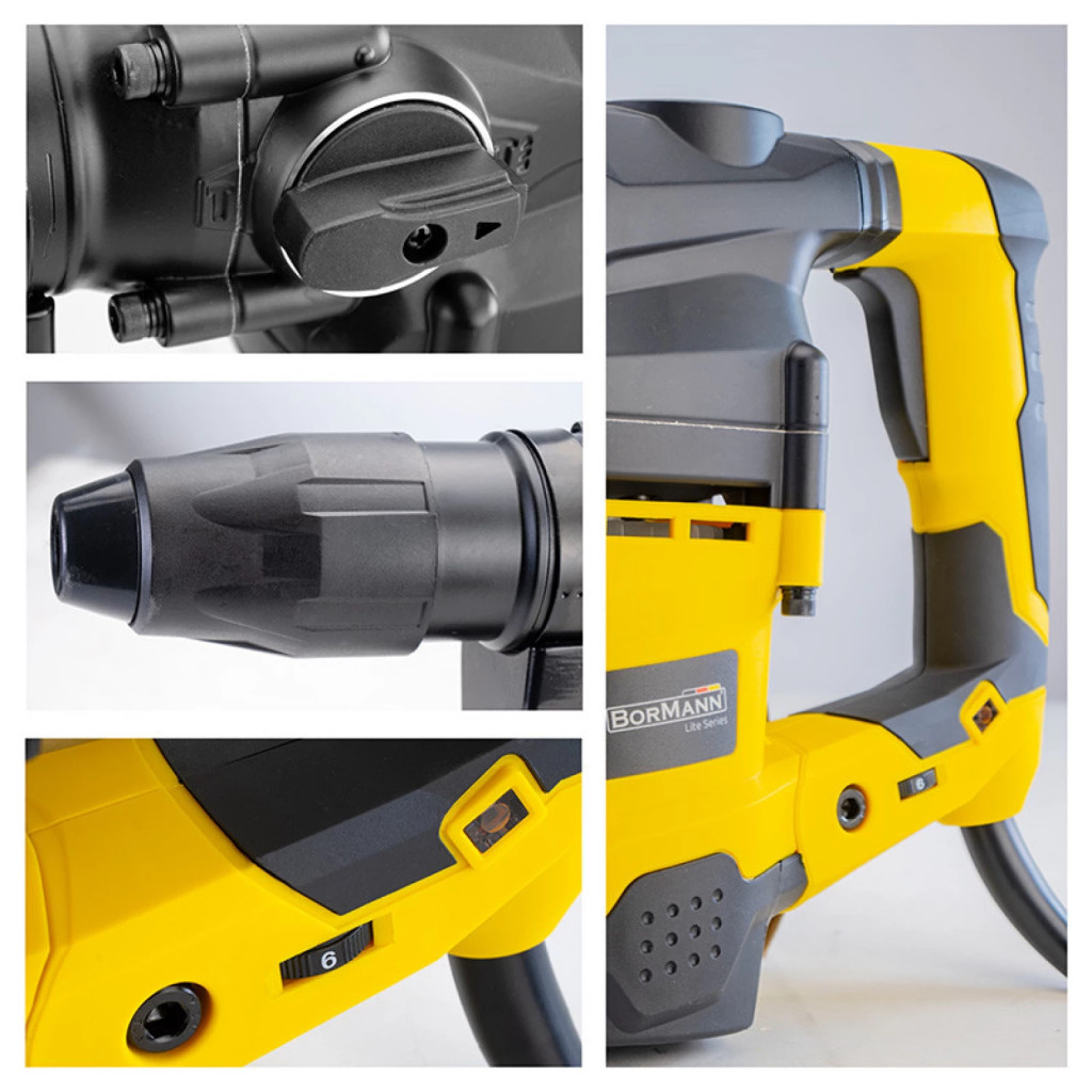 Ciocanul BORMANN Lite BPH7500 este un ciocan rotopercutor si demolator SDS-MAX, conceput pentru lucrari de perforare, daltuire si demolare usoara. Cu un motor puternic de 1600W si o energie de impact de 10J, acest model ofera performante excelente in lucrari de constructii, renovari si reparatii.