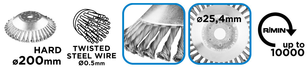 GRAPHITE Disc din sârmă, perie de colț răsucită 200 x 25,4 mm pentru cositoare pe benzină (55H101)