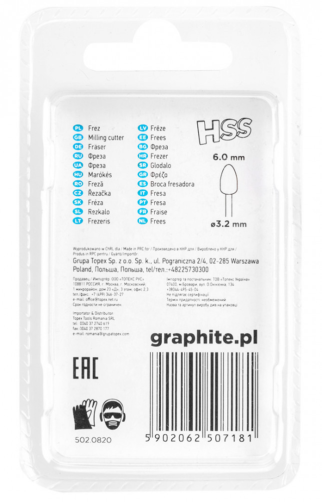 GRAPHITE Freză turbo cu coadă, 6.0mm, tip cartuș, ax 3.2mm, 2buc (55H061)