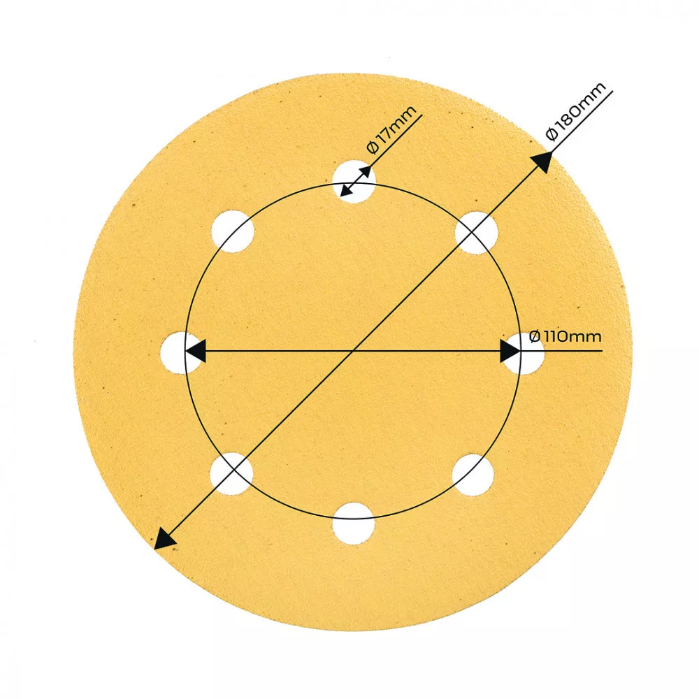 GRAPHITE Hârtie de Șlefuit cu Velcro, 180mm, K120, 5 bucăți, 8 găuri, pentru șlefuitor 59G263 (54H023)