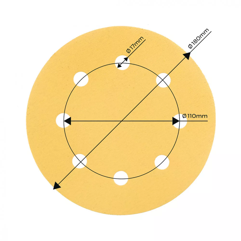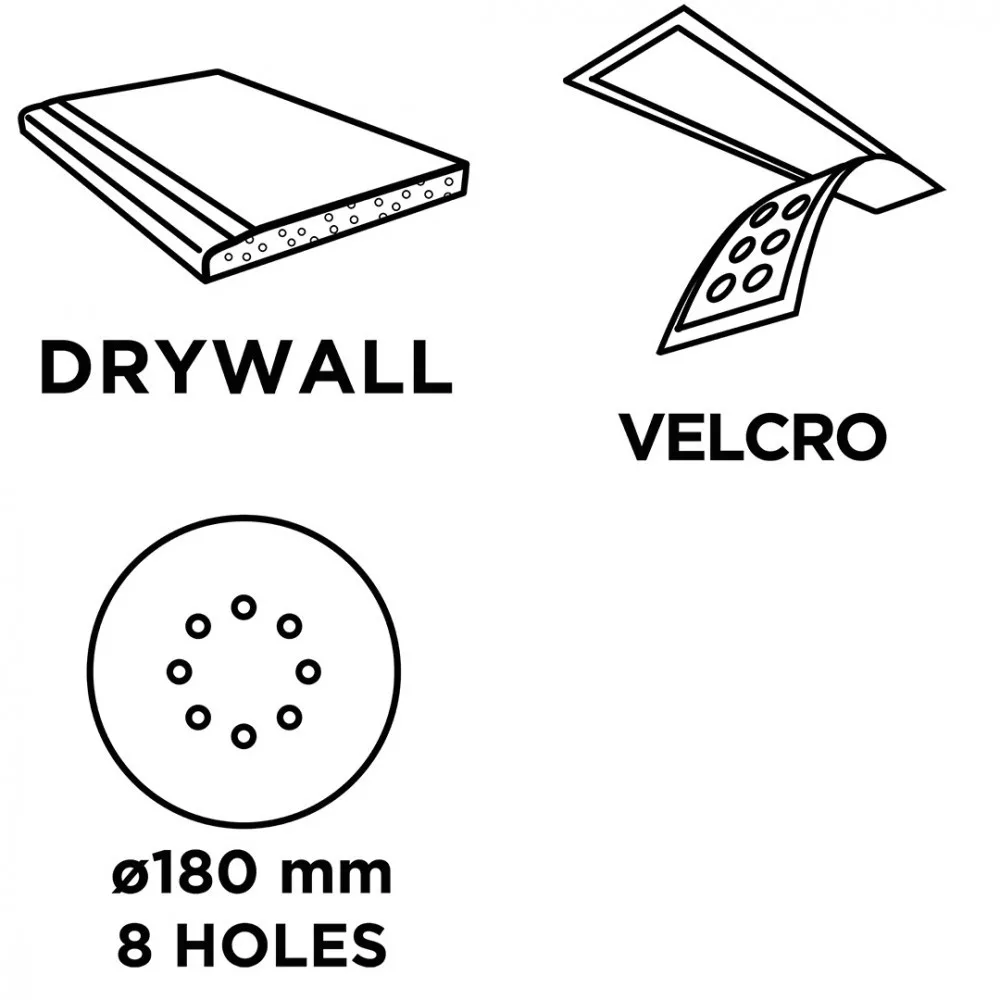 GRAPHITE Hârtie de Șlefuit cu Velcro, 180mm, K180, 5 bucăți, 8 găuri, pentru șlefuitor 59G263 (54H024)