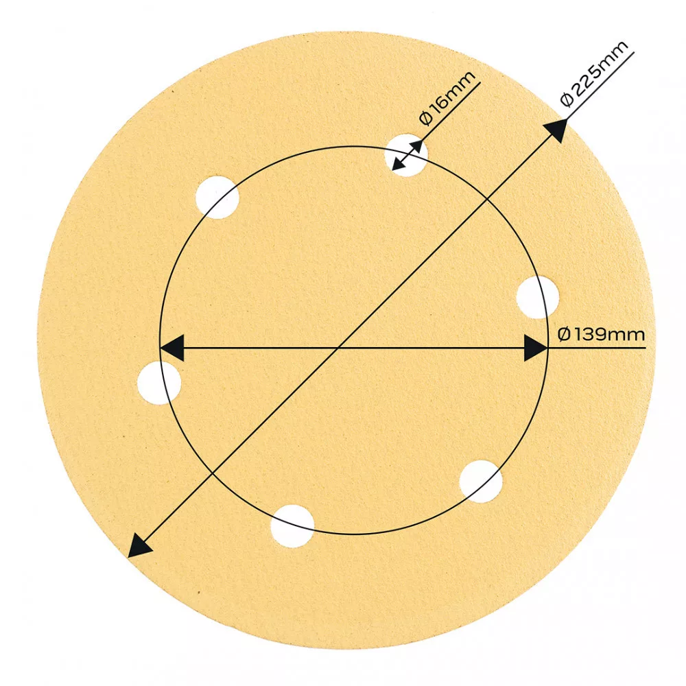 GRAPHITE Hârtie de Șlefuit cu Velcro, 225mm, K120, 5 bucăți, 6 găuri, pentru șlefuitor 59G264, 59G265 (54H030)