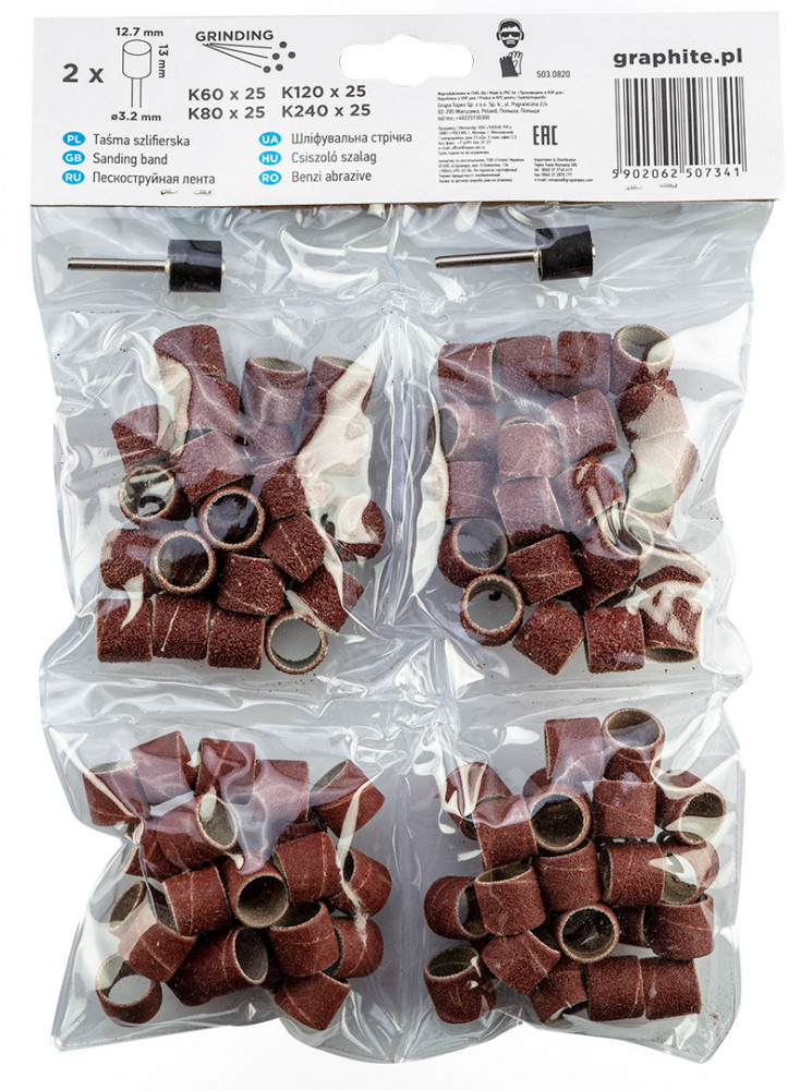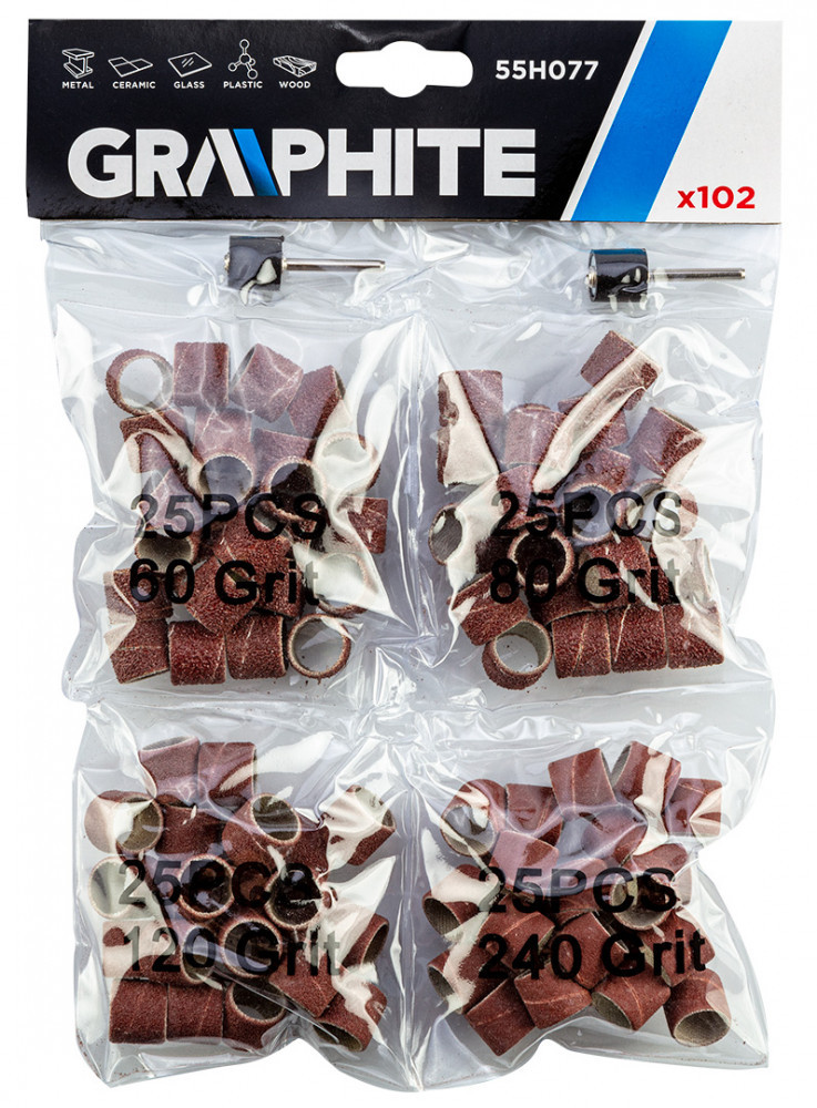 GRAPHITE Manșon de polizat, 12.7mm, K60, K80, K120, K240, set 100buc + ax 3.2mm, 2buc (55H077)