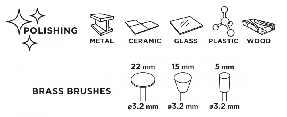 GRAPHITE Perie cu coadă, alamă: perie de finisaj, perie rotundă, perie pentru roată, set 3buc (55H067)