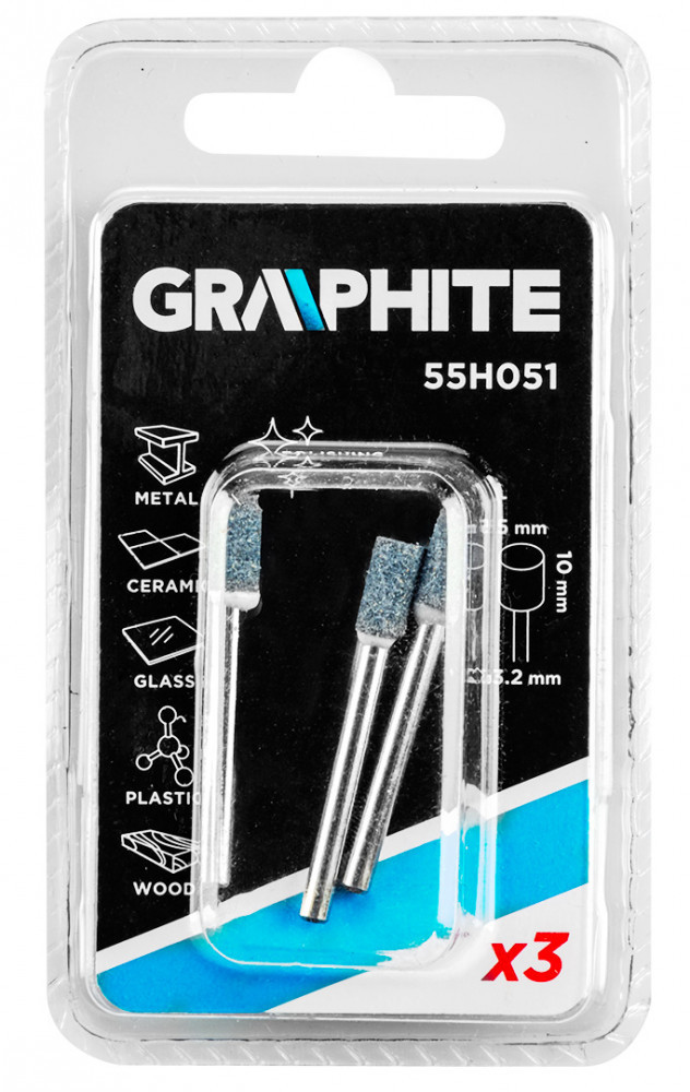 GRAPHITE Piatră de polizat cu coadă, 5x10mm, cilindrică, ax 3.2mm, 3buc (55H051)
