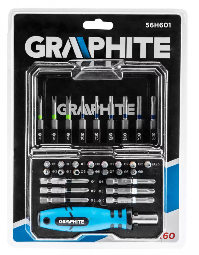 GRAPHITE Set de biți de șurubelniță, 31 buc., biți 25mm - 15 buc., biți 50mm - 15 buc., suport pentru biți - 1 buc. (56H602)
