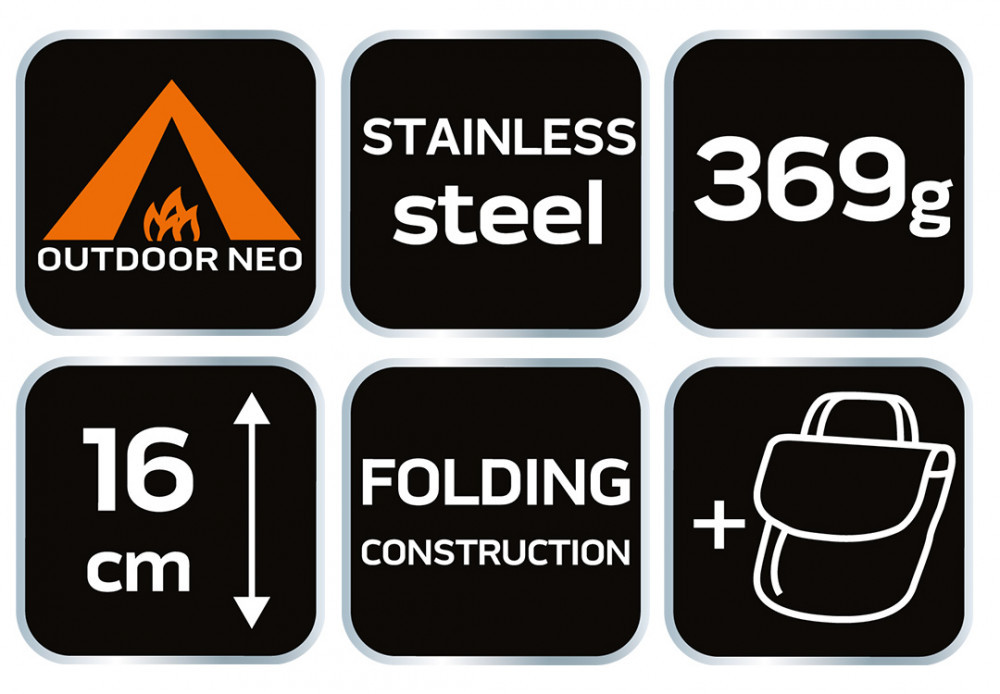 NEO Aragaz de camping pe gaz, pliabil, oțel inoxidabil, 16*11.5/12.8cm, greutate 369g, cu toc din țesătură (63-126)