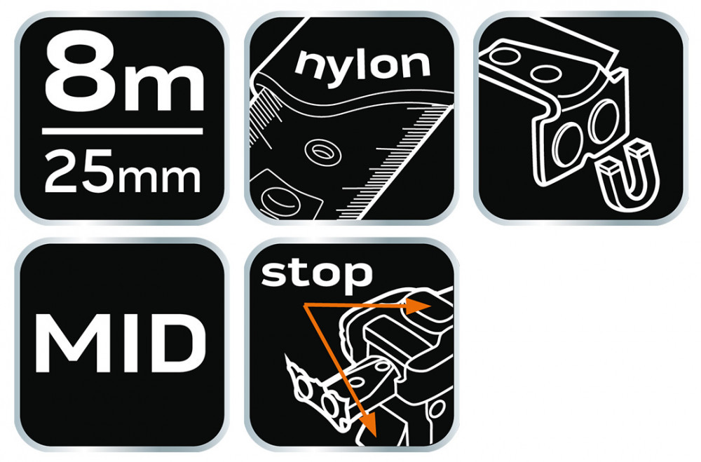 NEO Bandă de măsurat 8m / 25mm, magnetică, frână dublă (67-111-1)