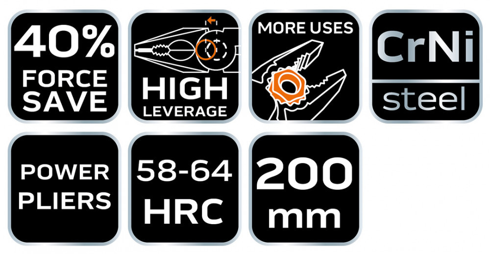NEO Clește combinat 200mm 40% Economie de energie, cu dinți pentru slăbit șuruburi (01-153)