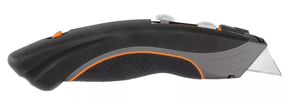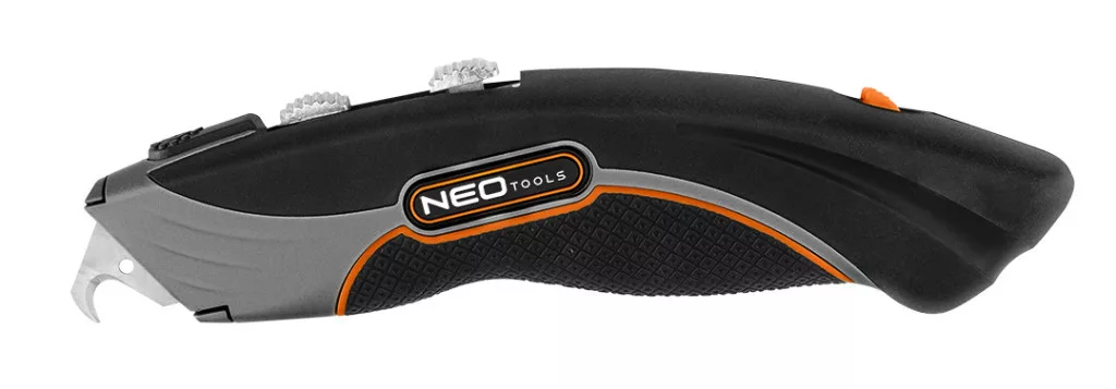 NEO Cuțit cu lamă trapezoidală, carcasă metalică, 6 lame cu cârlig și trapezoidale (63-700)
