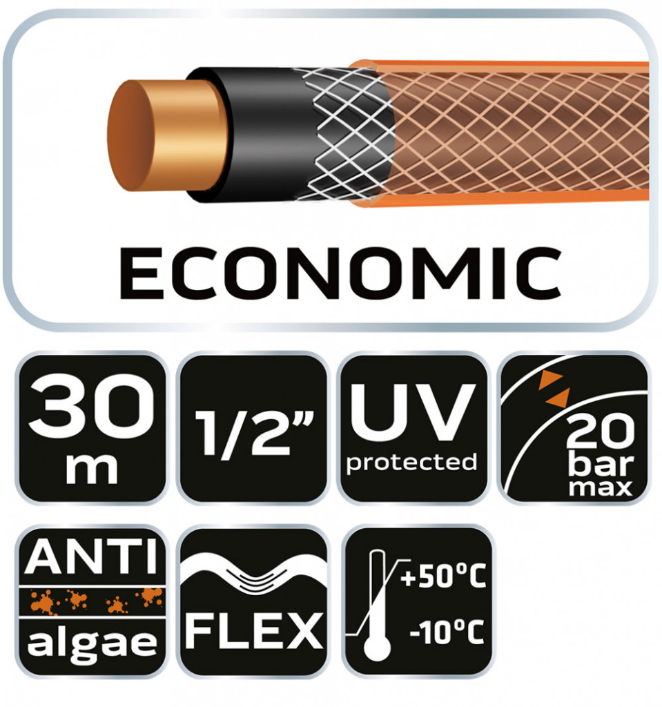 NEO Furtun de irigare 1/2"x30 m, 4 straturi NEO ECONOMIC (15-801)