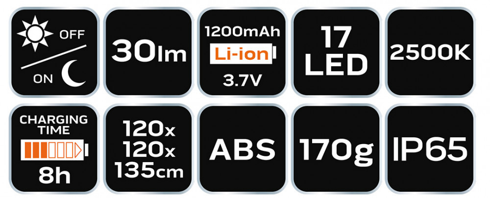 NEO Lampă solară de grădină, 17 LED, 30 lum (99-108)