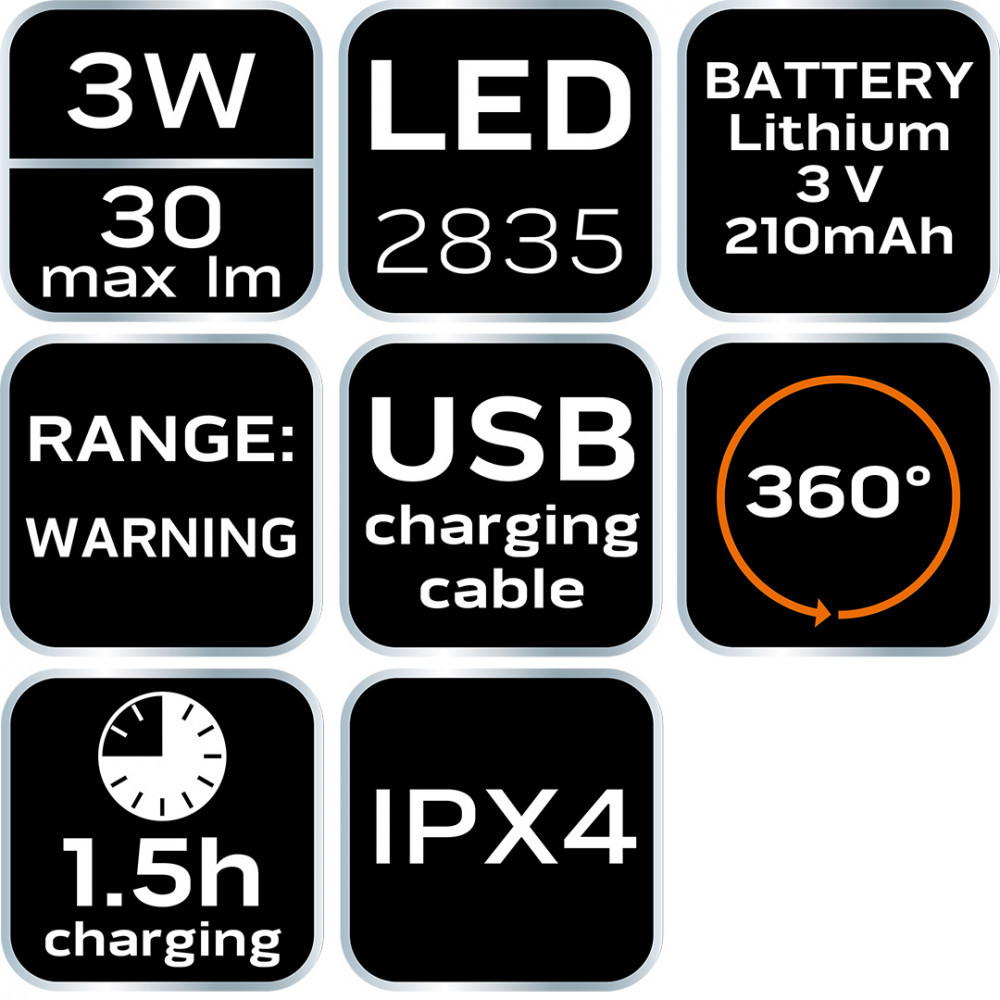 NEO Lumină spate bicicletă, 30lm, LED, acumulator, 3W (91-002)