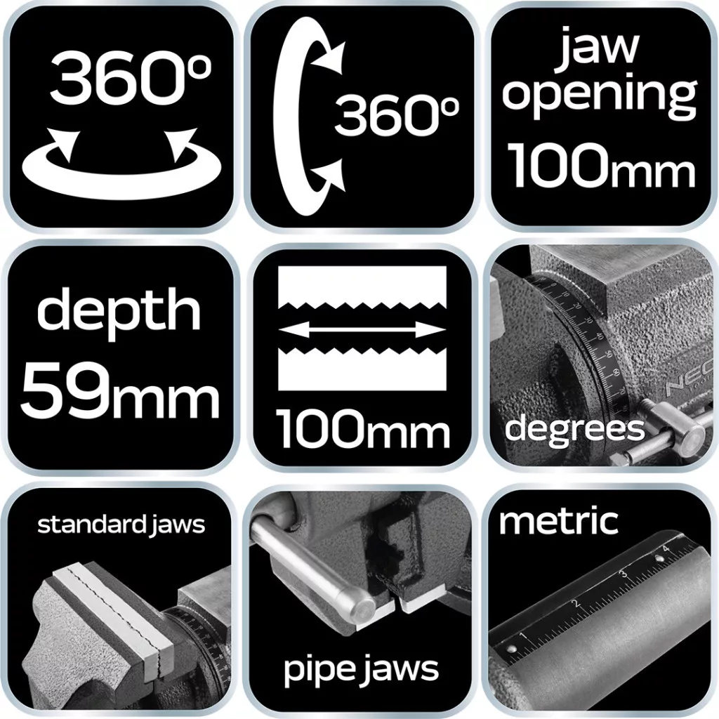 NEO Menghină 100mm, pentru metalurgie, rotativă 360 grade (35-030)
