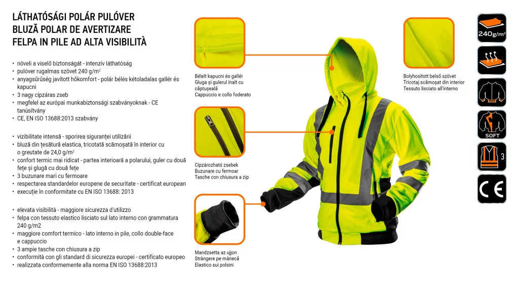 NEO Palton de lucru vizibil, galben, cu glugă, XL (81-745-XL)