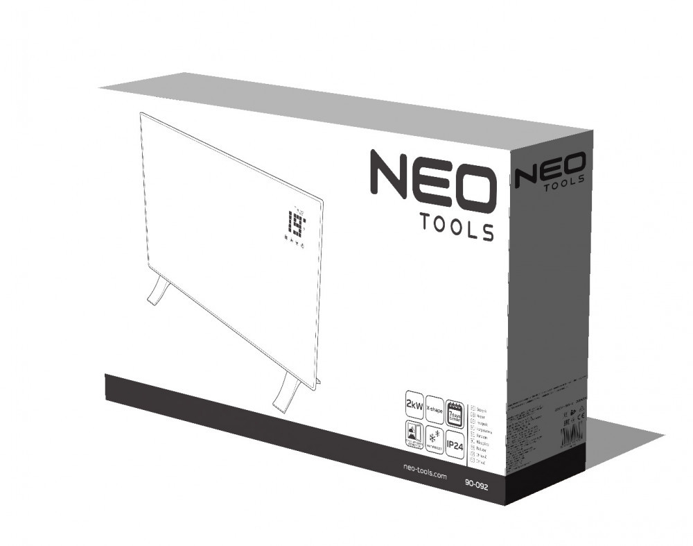 NEO Panou de încălzire electric 2000W, IP24, telecomandă, temporizator săptămânal, panou tactil (90-092)